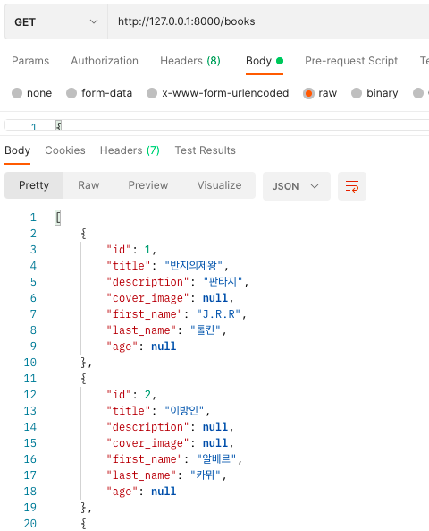 '/books'에 get요청이 오면 책과 작가의 정보를 보내준다.