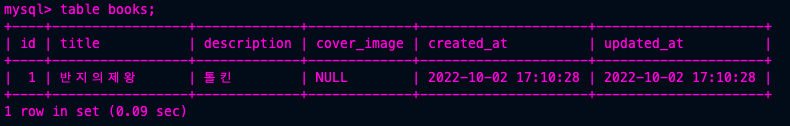 title은 not null조건이 있기 때문에 값을 넣지 않거나 null을 넣으면 에러가 난다.