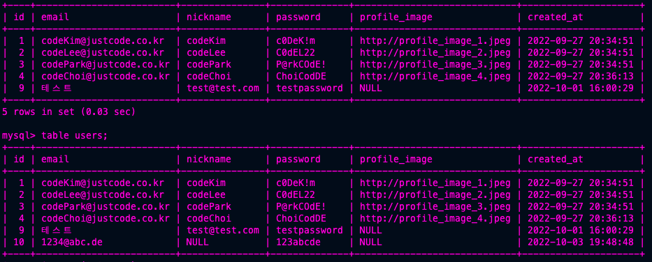 id, created_at은 db에서 자동으로 값을 할당한다.