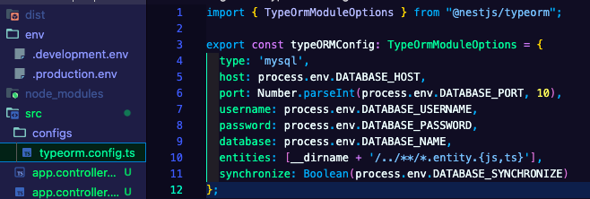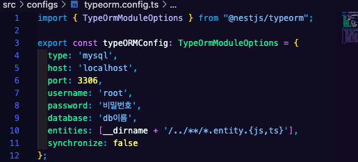 난 configs/typeorm.config.ts에 typeORMConfig를 작성하고