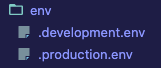 그리고 env라는 폴더를 만들어 개발환경에서 사용할 환경변수를.development.env에, 프로덕션환경에서 사용할 환경변수를 .production.env에 저장해준다.