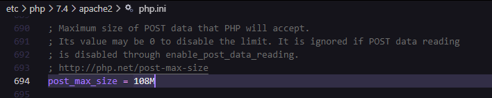 그래도 업로드 가능한 최대 파일 크기는 변하지 않는데 php.ini파일에서 공식문서에 언급된 두 변수를 바꿔주면 된다.