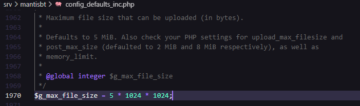 일단 config_defaults_inc.php파일을 보면 기본값이 5MiB로 설정되어 있다.